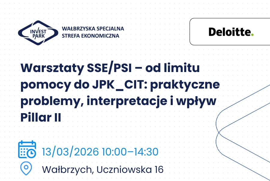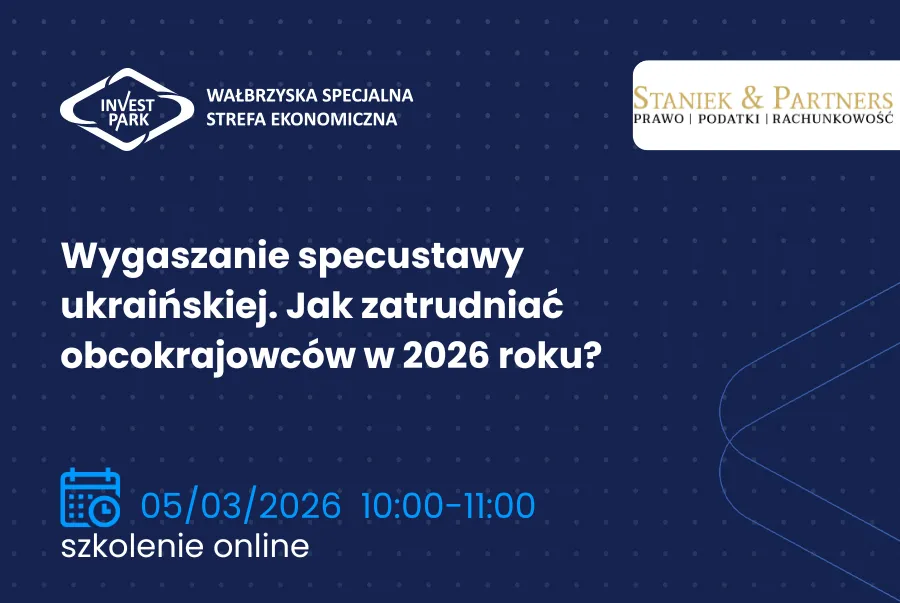 Wałbrzyska Specjalna Strefa Ekonomiczna „INVEST-PARK” wspólnie z Kancelarią SDZ LEGAL Schindhelm zaprasza na  webinarium „Jak (przypadkiem) nie stracić decyzji o wsparciu – czyli małe błędy mogące skutkować wielkimi konsekwencjami”, które odbędzie się 27 lutego 2026 r. w godzinach ...