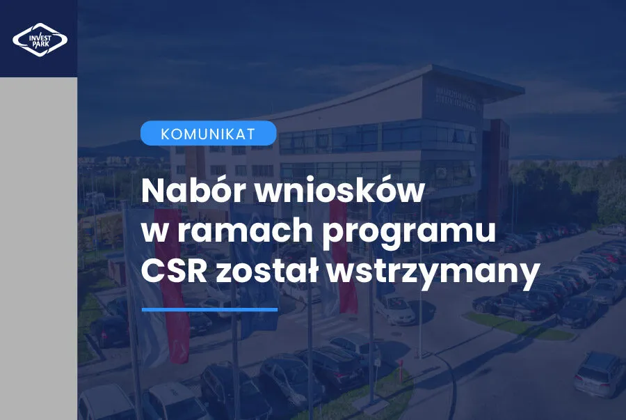 Zarząd WSSE „INVEST-PARK” uprzejmie informuje, że nabór wniosków w ramach programu CSR został wstrzymany.