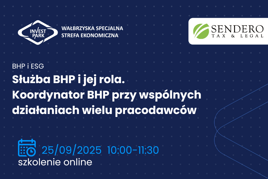 Wałbrzyska Specjalna Strefa Ekonomiczna „INVEST-PARK” wspólnie z Kancelarią Sendero Tax & Legal zaprasza na pierwsze webinarium