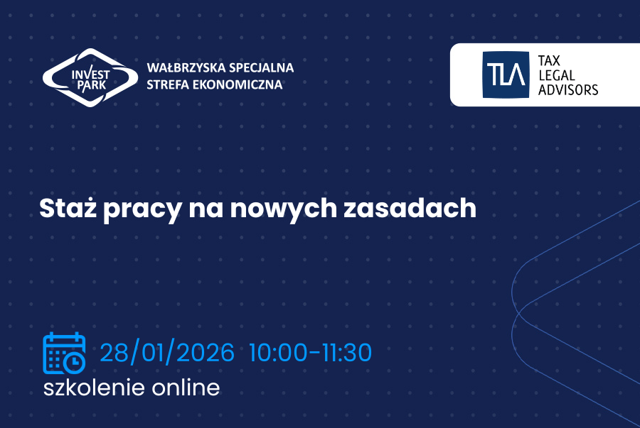 Wałbrzyska Specjalna Strefa Ekonomiczna „INVEST-PARK” wspólnie z Kancelarią TLA Tax & Legal zaprasza na webinarium